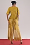Featuring mehendi green wide-leg pants in tissue silk base. Keep the look refined with a blazer, minimal jewellery, sleek heels and bold makeup paired with neatly tied-back hair, Ideal for fashion-forward soirees, cocktail evenings, art showcases, or modern festive gatherings.