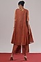 Featuring rust heiko pants in handwoven zari kota doria base. Accentuate it with a top, statement earrings and wedges for festive gatherings or family functions.