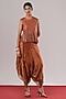 Rust Handwoven Zari Silk Pleated Peplum Top