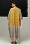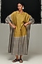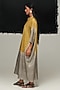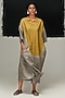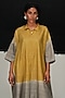 Featuring a steel grey and green dress in handwoven tussar silk base with tie-dye. Accentuate it with statement earrings and heels for an evening look.