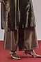 Featuring steel grey farshi pants in handwoven tissue silk base. Keep the look refined with a blazer, minimal jewellery, sleek heels and bold makeup paired with neatly tied-back hair, Ideal for fashion-forward soir?es, cocktail evenings, art showcases, or modern festive gatherings.
