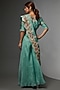 Featuring a blue crop top in chanderi base with zardosi embroidery. It is paired with a matching organza pleated dupatta, a belt, and organza palazzo pants.