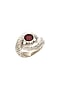 Featuring a white finish evil-eye ring studded with garnet gemstone, set in 92.5 sterling silver. Experience versatility and elegance with our exquisite jewellery collection, perfect for both weddings and casual occasions