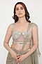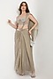 Featuring a mint green pre-draped saree in marble tissue, net and butter crepe base. It is paired with a sculpted corset blouse having mirror, acrylic and cutdana work. Accentuate it with silver or pearl jewellery and heels for festive celebrations or sangeet ceremony.