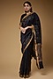 Featuring a black saree in chanderi base with threadwork and cutwork border, including striped detailing. It is paired with an unstitched blouse piece. Accessorize with statement jewellery and heels for cocktail wear.