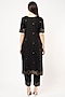 Featuring a black kurta in mulberry silk base with silver zari floral jamdani weave. It is paired with matching pants.