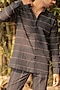 Featuring a black shirt in uneven yarn base. It is paired with matching wide-legged cargo pants.