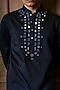 Dark Blue-Light Blue Ombre Silk Blend Mirror Work Kurta
