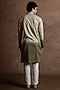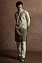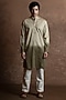 Featuring an olive green toned kurta in cotton base with mandarin collar and embroidery. Style it with pants and kolhapuri sandals for a festive occasion, cultural event, wedding, engagement or mehendi ceremony.