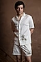 Featuring a white shirt in cotton base with contrast piping detail and motifs embroidery. It is paired with shorts. Style it with shoes for a summer outings, casual styling, and effortless comfort all day wear.