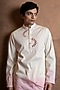 Featuring a white-pink ombre kurta in cotton blend base with mirror work. Style it with pants and kolhapuri sandals for a festive occasion, cultural event, wedding, engagement or sangeet ceremony.