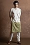 Featuring a white-sage green ombre kurta in cotton blend base with mirror work. Style it with pants and kolhapuri sandals for a festive occasion, cultural event, wedding, engagement or sangeet ceremony.