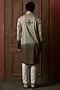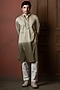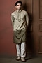 White-Sage Green Ombre Silk Blend Mirror Work Kurta