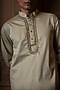 Featuring a white-sage green ombre kurta in silk blend base with mirror work. Style it with pants and kolhapuri sandals for a festive occasion, cultural event, mehendi or sangeet ceremony, exuding charm and elegance.