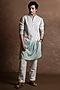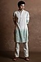 Featuring a white-soft mint ombre kurta in cotton blend base with mirror work. Style it with pants and kolhapuri sandals for a festive occasion, cultural event, wedding, engagement or sangeet ceremony.