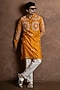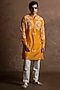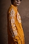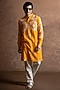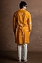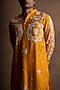 Featuring a yellow kurta in muslin base with mandarin collar and embroidery. Style it with pants and mojaris for a festive occasion, cultural event, wedding, engagement or haldi ceremony.