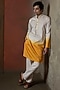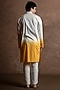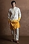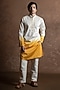 Featuring a yellow toned kurta in cotton base with mandarin collar and embroidery. Style it with pants and kolhapuri sandals for a festive occasion, cultural event, wedding, engagement or haldi ceremony.