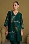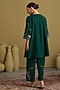 Featuring a green kurta in handwoven cotton base with handwork and woven ikat detail. It is paired with pants. Accentuate it with zirconia or swarovski jewellery, embellished heels and a clutch for a wedding, sangeet or engagement ceremonies.