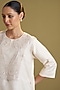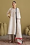Featuring an ivory kurta in mulberry silk and handwoven striped silk base. It is paired with pants and a dupatta. Accentuate it with zirconia or swarovski jewellery, embellished heels and a clutch for a wedding, sangeet or engagement ceremonies.