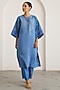 Ocean Blue Silk Chanderi Handwork Kaftan Set