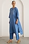 Featuring an ocean blue kaftan in silk chanderi base with handwork. It is paired with pants. Accentuate it with dangler earrings and heels for a festive look.