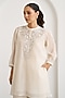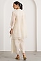 Featuring a pearl white top in mul chanderi base with handwork. It is paired with pants. Accentuate it with statement earrings and heels for a complete look.