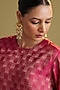 Featuring a rani pink kurta in banarasi silk brocade base with zari and katan silk thread detailing. It is paired with pants. Accentuate it with zirconia or swarovski jewellery, embellished heels and a clutch for a wedding, sangeet or engagement ceremonies.