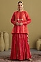 Red Mul Chanderi Handwork Crushed Lehenga Set