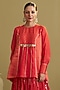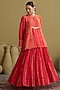 Featuring a red crushed lehenga in mul chanderi base with gota handwork and handmade tassels. It is paired with a silk chanderi and banarsi top having handwork. Accentuate it with zirconia or swarovski jewellery, embellished heels and a clutch for a wedding, sangeet or engagement ceremonies.