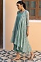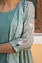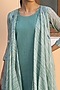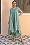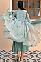 Featuring an aqua blue dress in muslin cotton base with an attached overlay, applique work, and print.