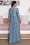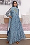 Featuring an azure blue anarkali in cotton muslin base with sheer sleeves, floral print and threadwork. It is paired with a dupatta. Perfect wear for festive occasions.