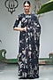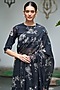 Black Muslin Cotton Floral Printed Saree Set