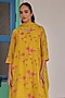 Featuring a canary anarkali in muslin cotton base with applique embroidery. It is paired with a scalloped dupatta. Style it with oxidized jewelry and juttis for ethnic look. Perfect for festive gatherings, cultural events, family celebrations, and daytime functions.