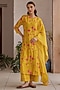 Featuring a canary kurta in muslin cotton base with floral motifs. It is paired with pants and a dupatta. Style it with oxidized jewelry and juttis for ethnic look. Perfect for festive gatherings, cultural events, family celebrations, and daytime functions.