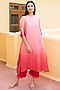 Featuring a cherry ombre kurta in muslin cotton base with shibori and thread embroidery. It is paired with matching pants.