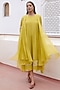 Vaayu features a mesmerizing Citrine Jacket Dress that captivates with its elegance. The eye-catching piece is crafted in muslin cotton with pintucks detail, floral applique embroidery and scattered print. Accessorize the designer dress with statement earrings and heels for evening soirees.