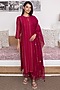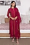 Featuring a garnet kurta in cotton muslin base with pintuck details. It is paired with matching pants and an embroidered. Style it with dangler earrings and sandals for a complete look.