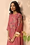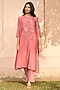 Featuring a hibiscus-colored kurta in muslin cotton base with applique embroidery. It is paired with pants. Accentuate it with dangler earrings and heels for a festive look, cultural event or pooja ceremony.
