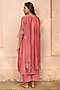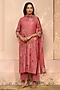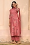 Featuring a hibiscus-colored kurta in muslin cotton base with applique embroidery. It is paired with pants and a dupatta. Accentuate it with dangler earrings and heels for a festive look, cultural event or pooja ceremony.