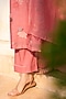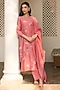Featuring a hibiscus-colored kurta in muslin cotton base with applique embroidery and print. It is paired with pants and a dupatta. Accentuate it with dangler earrings and heels for a festive look, cultural event or pooja ceremony.