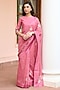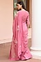 Featuring a hibiscus-colored saree in muslin cotton base with embroidery. It is paired with an unstitched blouse. Accentuate it with statement jewellery and heels for a wedding or sangeet ceremony.