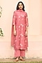 Hibiscus-Colored Muslin Cotton Floral Embroidered Kurta Set
