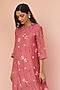 Featuring a hibiscus-colored kurta in muslin cotton base with floral embroidery. It is paired with pants. Accentuate it with dangler earrings and heels for a festive look, cultural event or pooja ceremony.