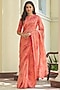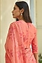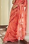 Featuring a hibiscus-colored saree in muslin cotton base with floral applique embroidery. It is paired with a printed unstitched blouse. Accentuate it with a blouse, statement jewellery and heels for a sangeet or wedding ceremony.