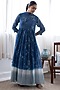 Featuring an ink blue anarkali in cotton muslin base with abstract floral print and gathers. It is paired with a dupatta having tassels. Perfect for casual or office wear.