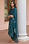 Featuring a jade kurta in giza silk base with embroidery. It is paired with pants and a dupatta. Accentuate it with statement earrings and heels for a festive ceremony.