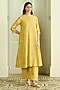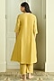 Featuring a lemon-colored kurta in muslin cotton base with floral and thread embroidery. It is paired with pants. Accentuate it with statement jewellery and heels for a festive occasion or pooja ceremony.