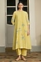 Featuring a lemon-colored kurta in muslin cotton base with applique embroidery. It is paired with pants. Style it with statement earrings and block heels, perfect for festive occasions.