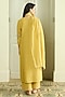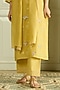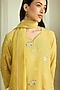 Featuring a lemon-colored kurta in muslin cotton base with thread work and floral embroidery. It is paired with pants and a dupatta. Style it with statement earrings and block heels, perfect for festive occasions.