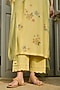 Featuring a lemon kurta in muslin cotton base with embroidery. It is paired with pants and a dupatta. Accentuate it with statement earrings and heels for a festive ceremony.